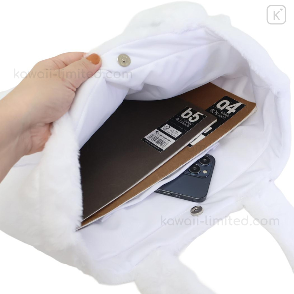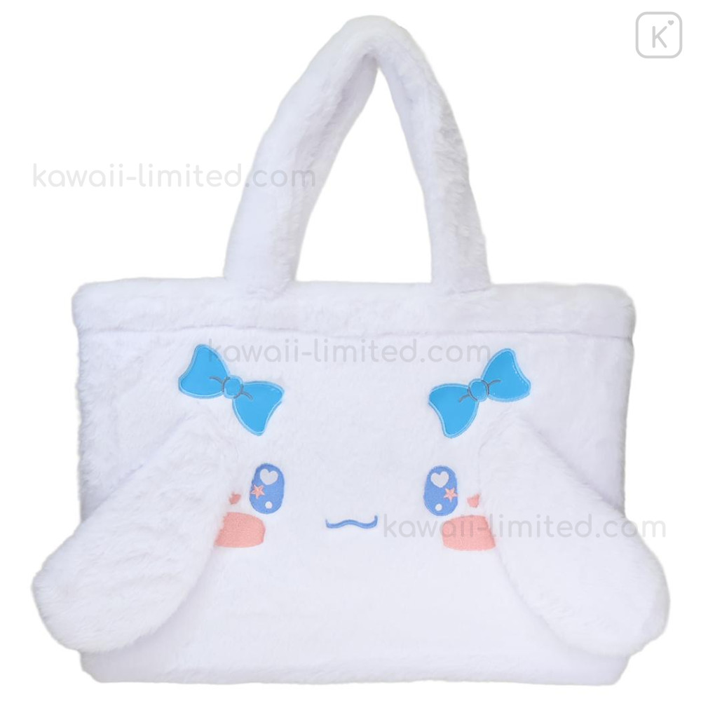 Japan Sanrio Fluffy Fur Tote Bag - Cinnamoroll : Heart Eyes Ribbon