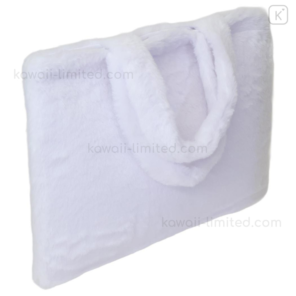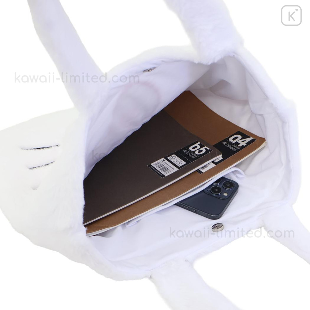 Japan Sanrio Fluffy Fur Tote Bag - Hello Kitty : Heart Eyes Ribbon