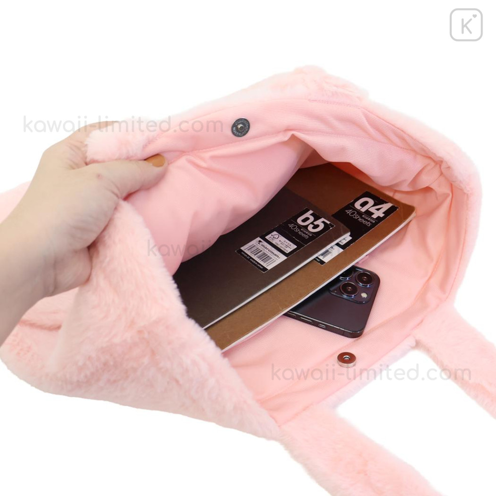 Japan Sanrio Fluffy Fur Tote Bag - My Melody : Heart Eyes Ribbon