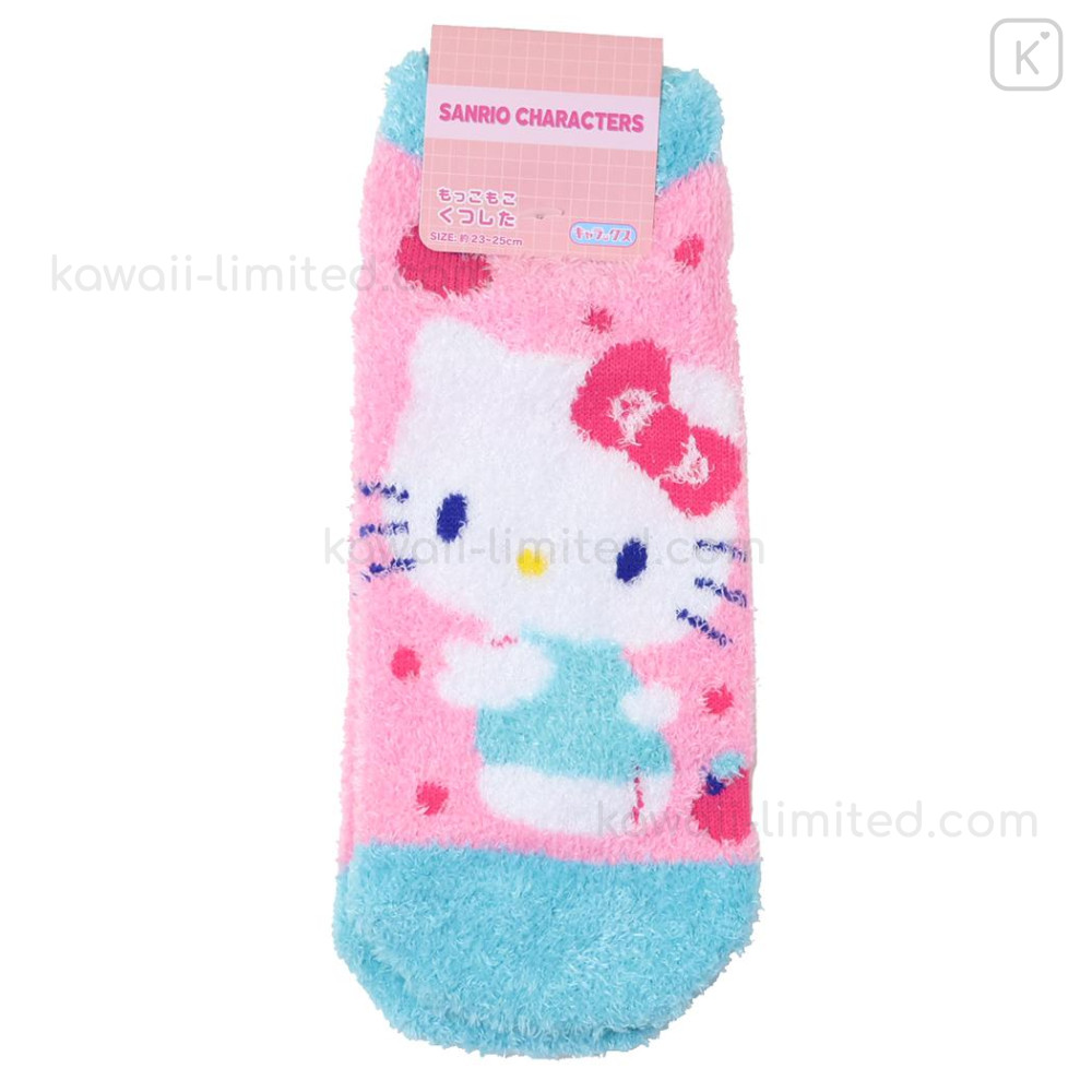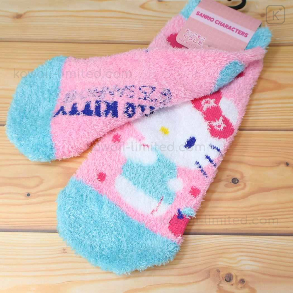 Japan Sanrio Fluffy Socks - Hello Kitty : Blue Pink Apple