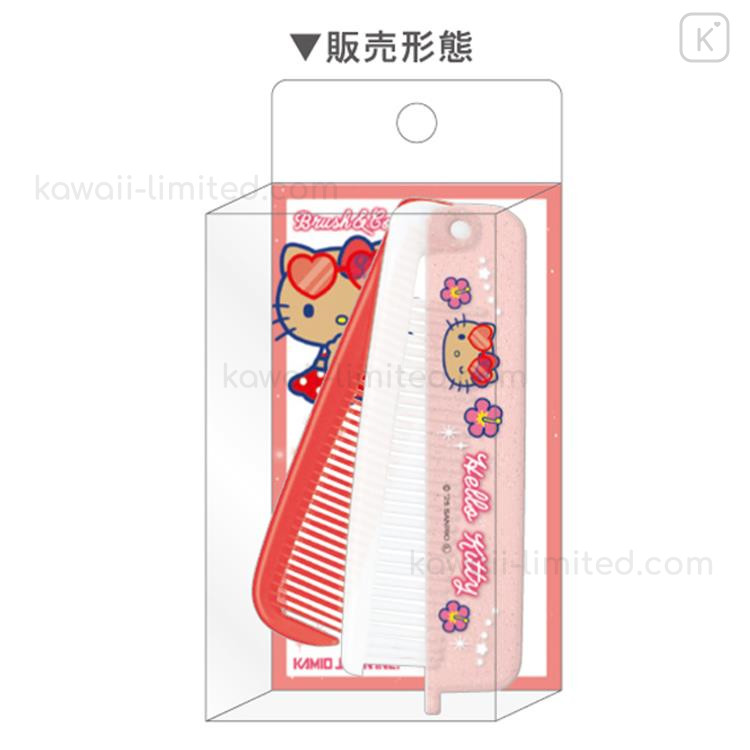 Japan Sanrio Folding Brush & Comb - Hello Kitty : Tan Swimsuit Party