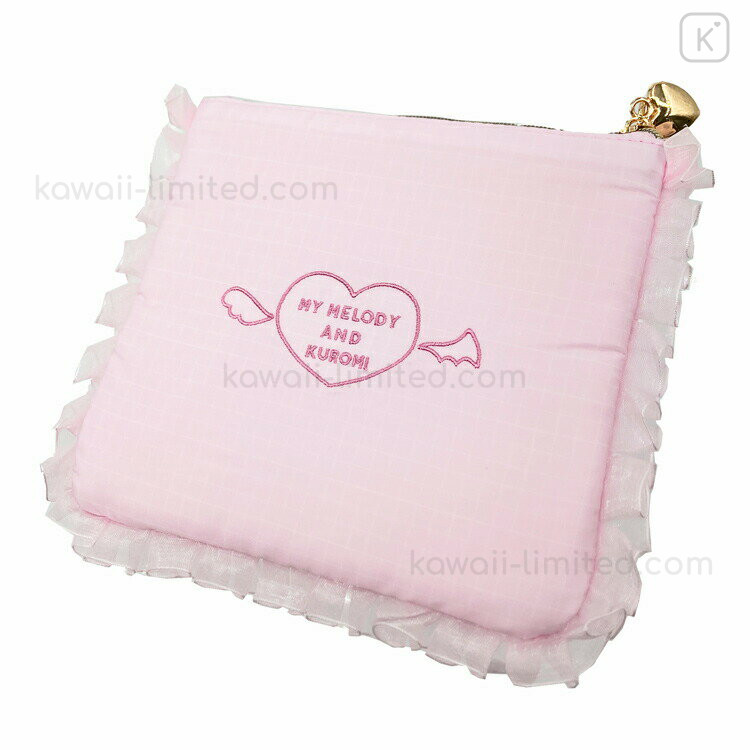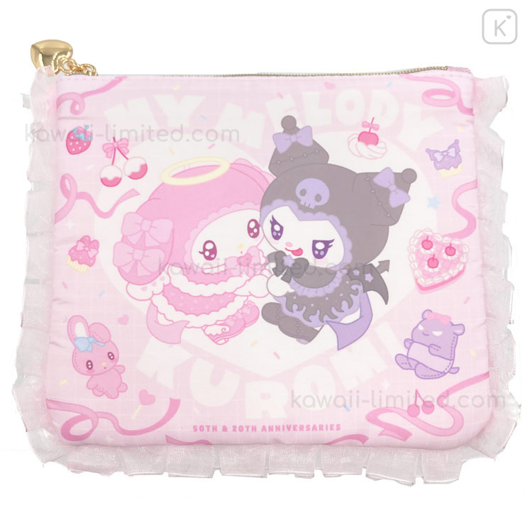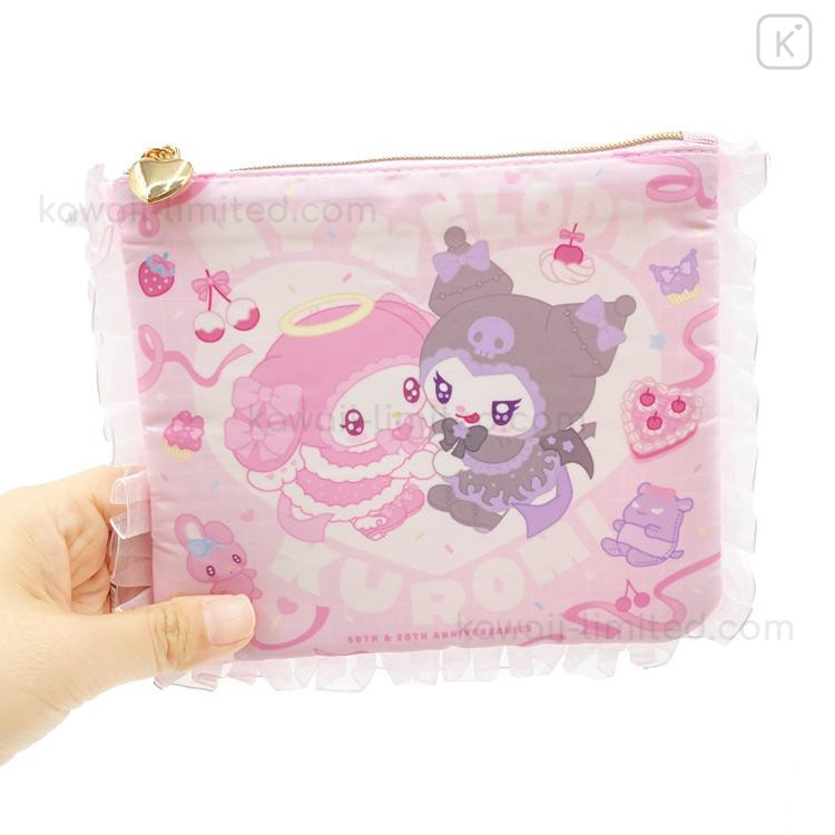 Japan Sanrio Frill Pouch - Kuromi & My Melody : Angel and Little Devil