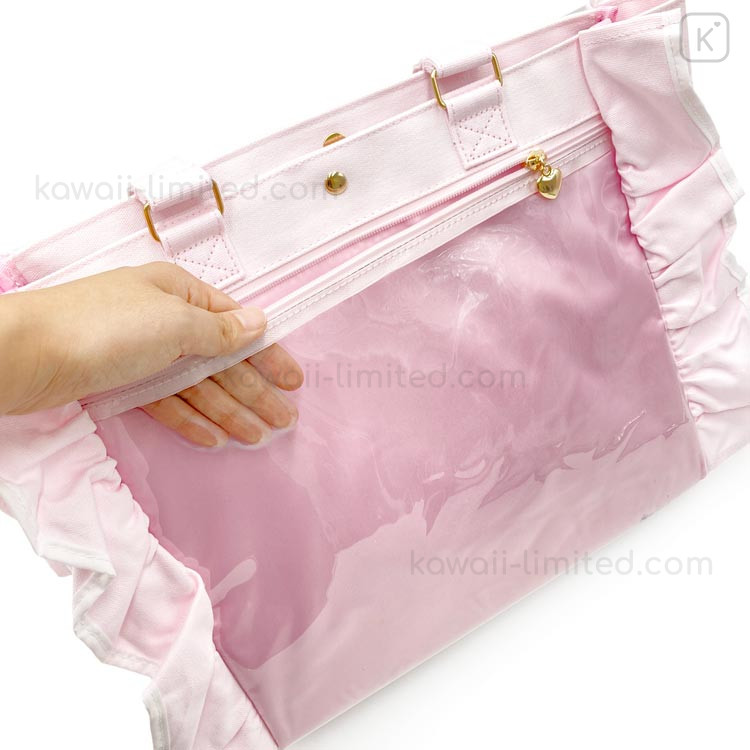 Japan Sanrio Frill Tote Bag - My Melody : Angel and Little Devil Clear Window