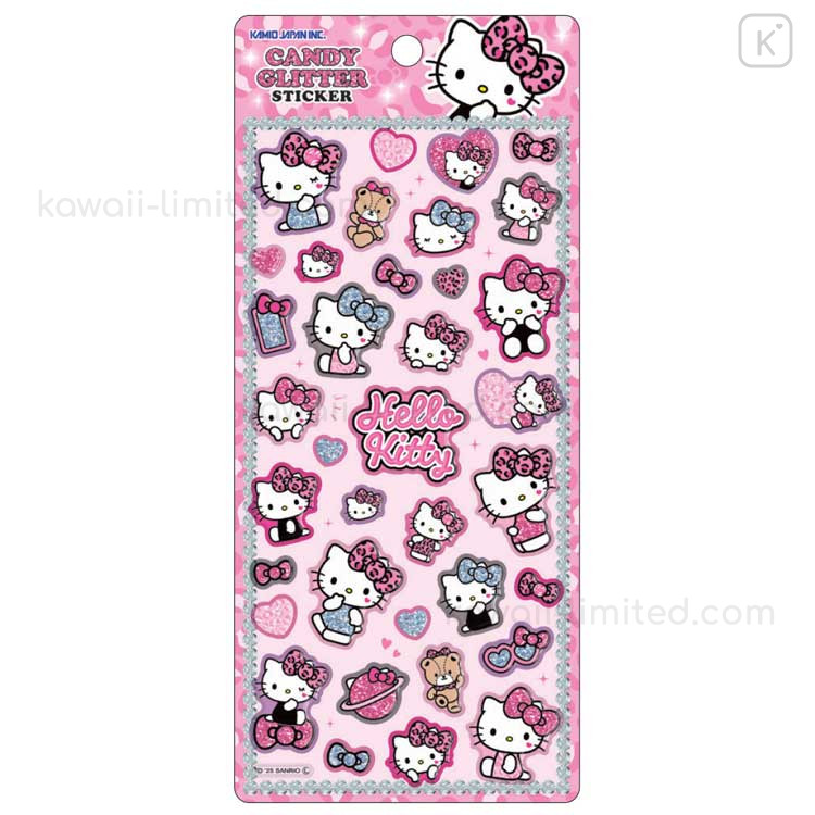 Japan Sanrio Glitter Sticker - Hello Kitty : Candy Gal Art Big Ribbon Leopard