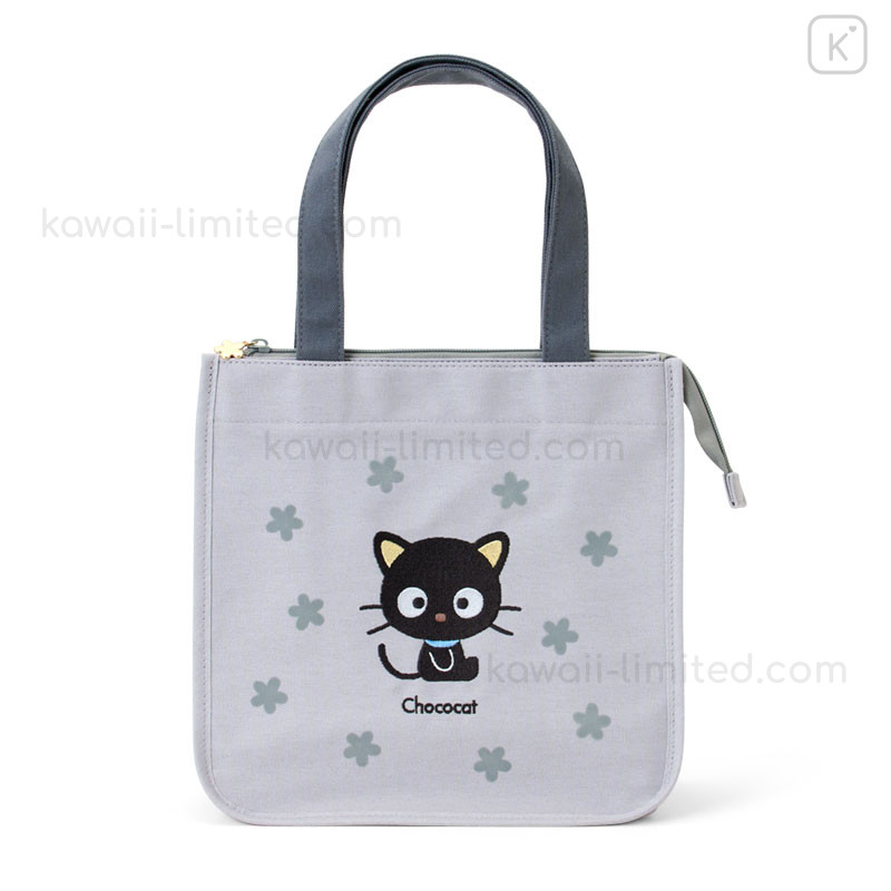 Japan Sanrio Insulated Cooler Lunch Bag - Chococat : 30th Anniversary Grey Flower
