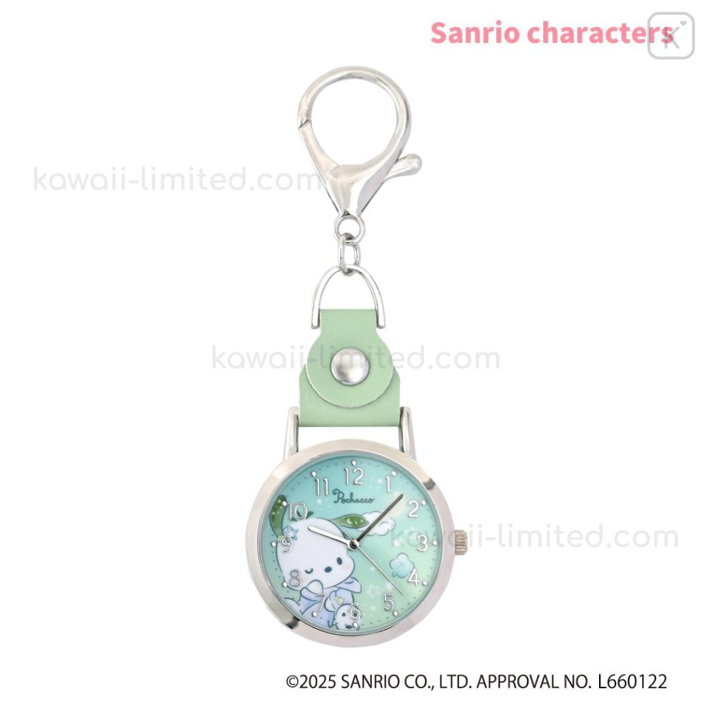 Japan Sanrio Keychain Watch - Pochacco : Mint Sliver