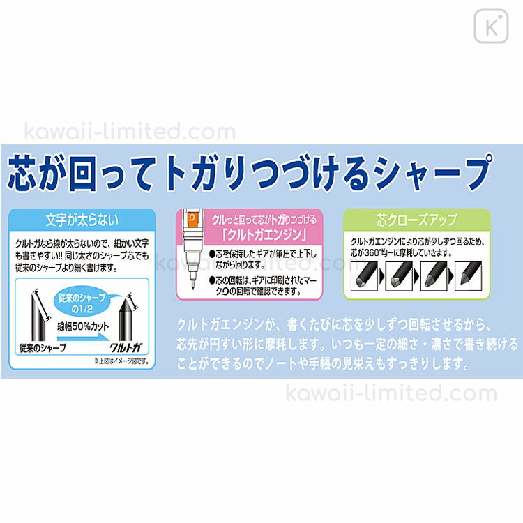 The uni-ball Kuru Toga mechanical pencil is a revolutionary retractable lead pencil that maintains its shape as you work with it. It has a unique gear that rotates the lead each time it comes into contact with the paper, so your tip remains cone-shaped and is far more resistant to breaking and gives comfortable writing experience