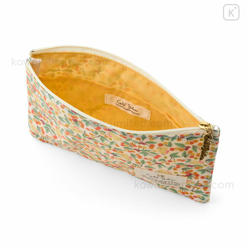 Japan Sanrio Liberty Fabrics Flat Pouch - Hello Kitty : Cherries and Bows Yellow