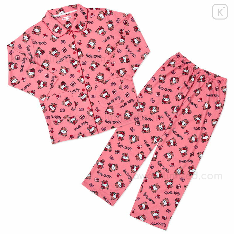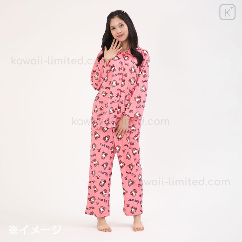 Japan Sanrio Long Sleeve Shirt Pajamas (M) - Hello Kitty : Bear Pink