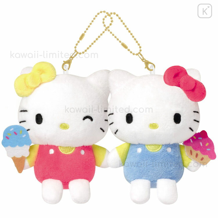 Japan Sanrio Mascot Holder Connecting Set - Hello Kitty & Hello Mimmy : Ice Cream