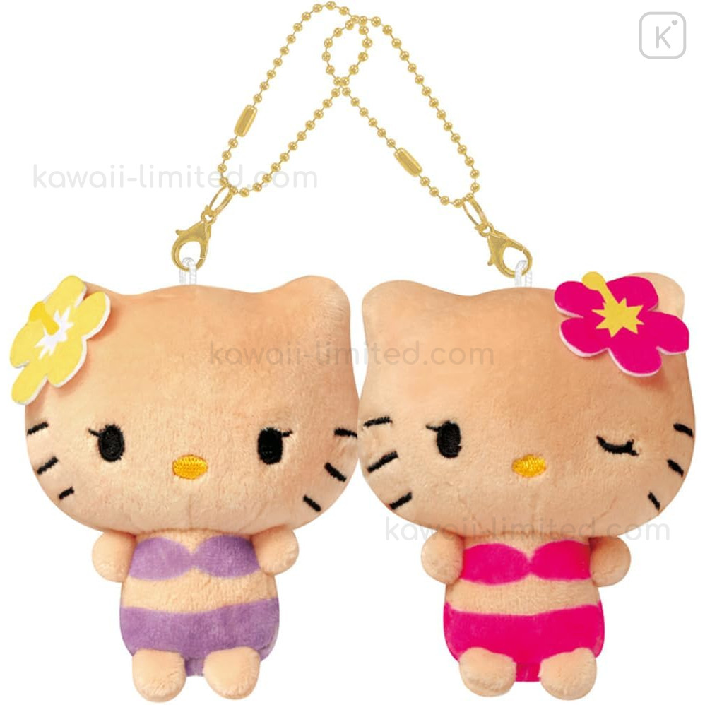 Japan Sanrio Mascot Holder Connecting Set - Hello Kitty & Hello Mimmy : Y2K Gal Swimsuit Tan