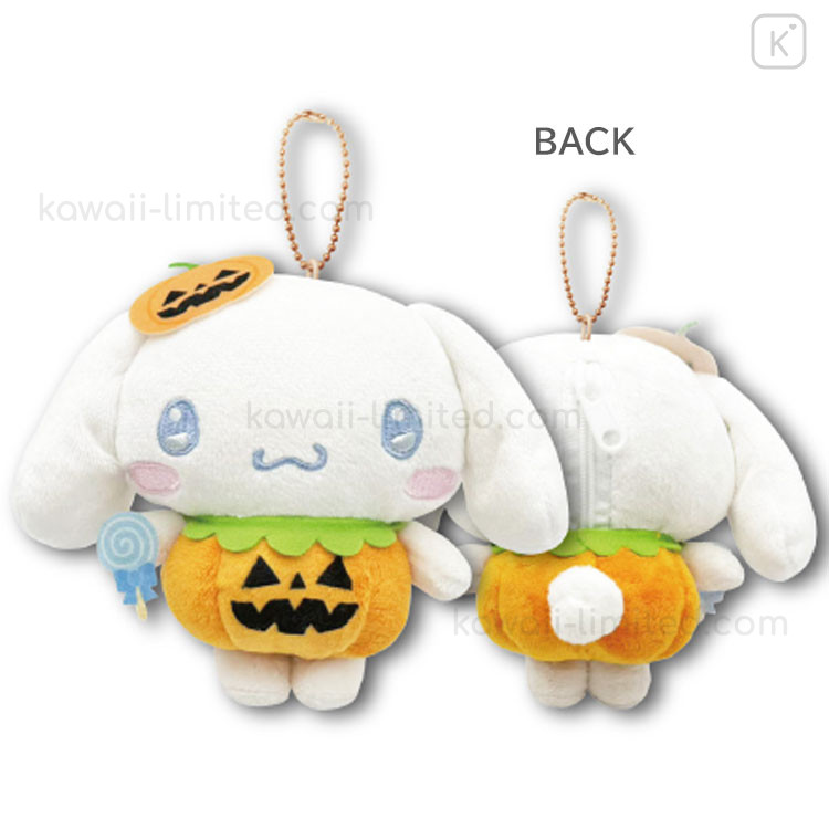 Japan Sanrio Mascot Holder Mini Plush Pouch - Cinnamoroll : Halloween Pumpkin