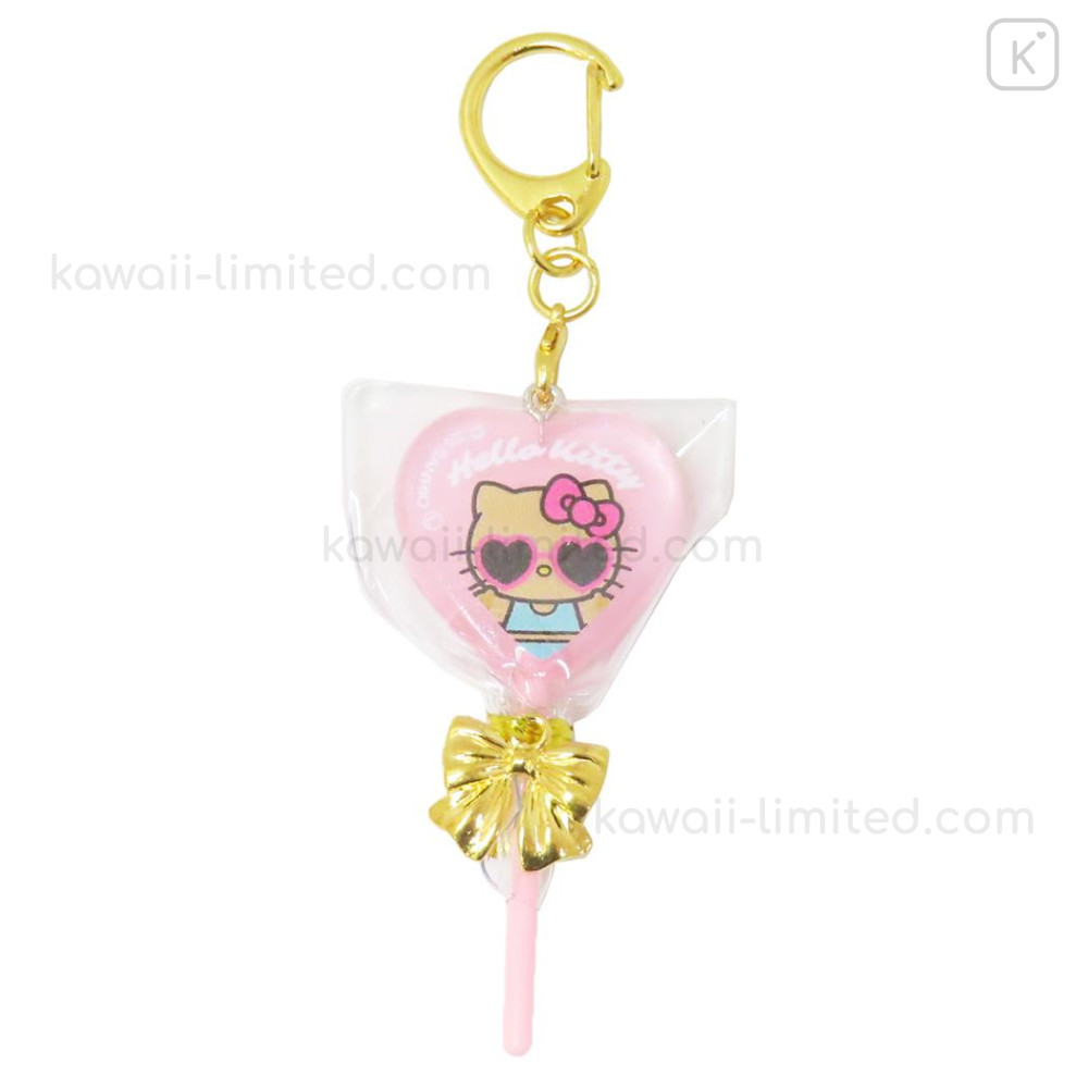 Japan Sanrio Mascot Keychain - Hello Kitty : Tan Swimsuit Party Lollipop Candy Sunglasses