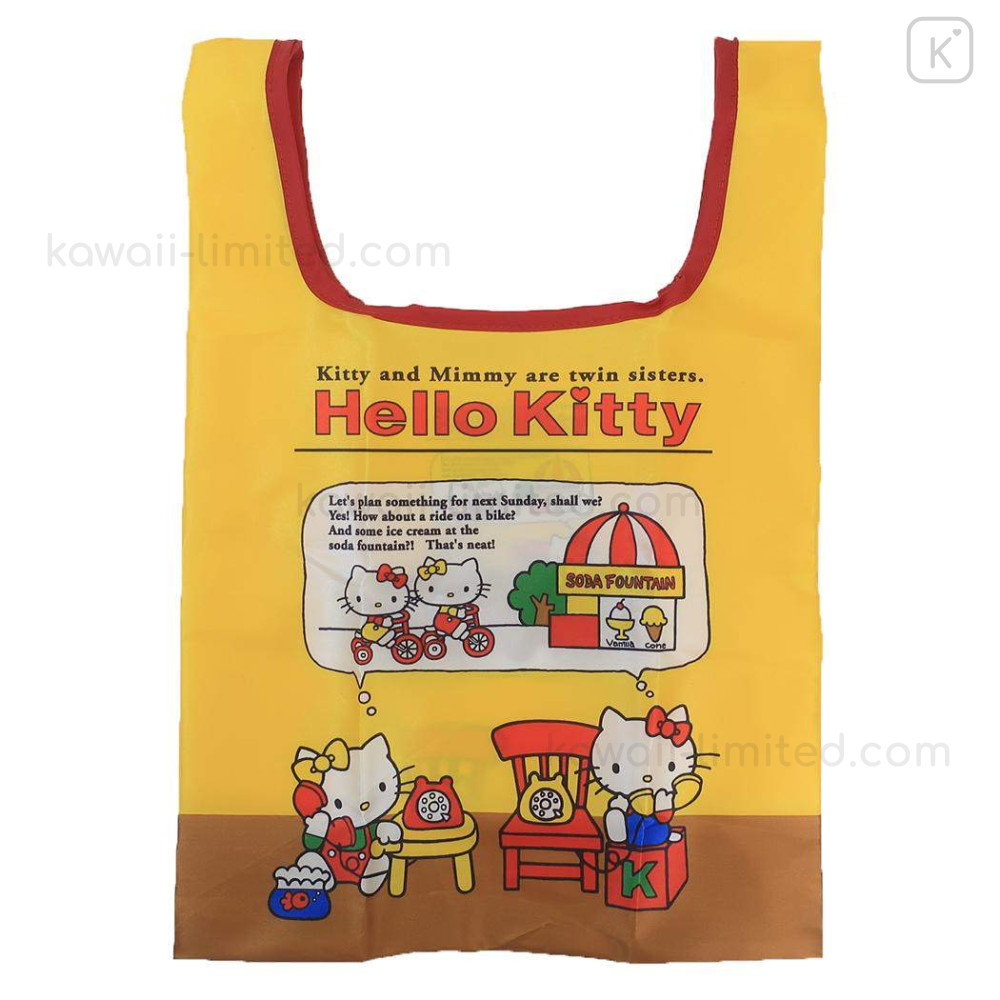 Japan Sanrio Mini Eco Bag with Pouch - Hello Kitty & Hello Mimmy : Retro