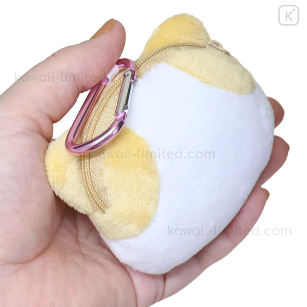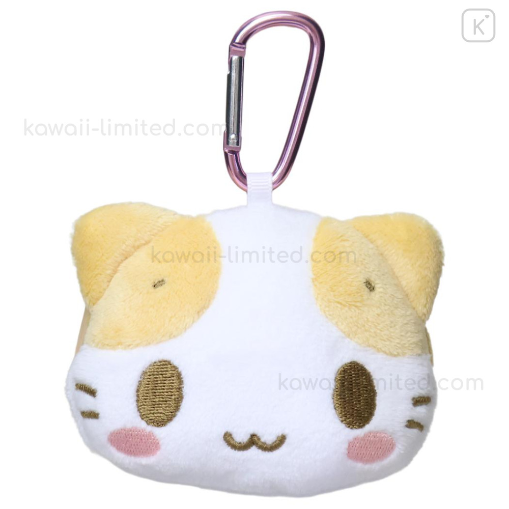 Japan Sanrio Mini Plush Pouch with Carabiner - Masyumaro : Fluffy Marshmallow-Like Cat Face