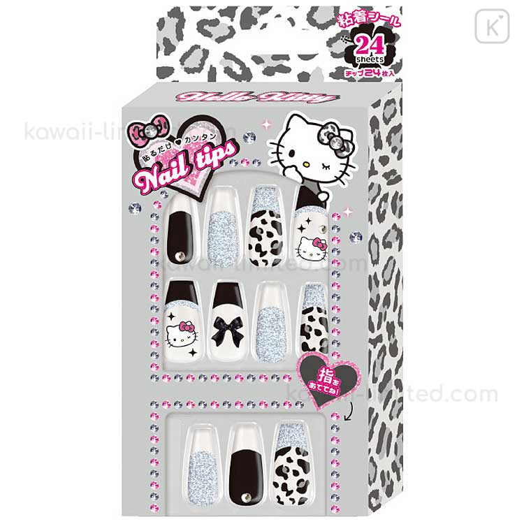 Japan Sanrio Nail Tips - Hello Kitty : Gal Art Big Ribbon Leopard Silver