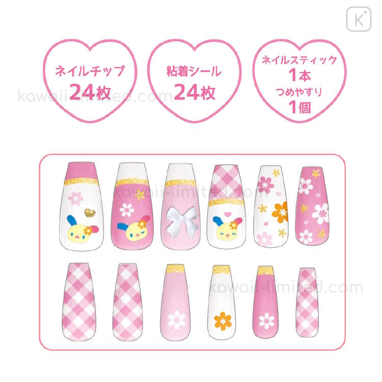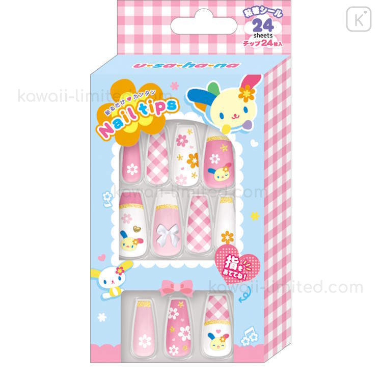 Japan Sanrio Nail Tips - Usahana : Gingham Pink White