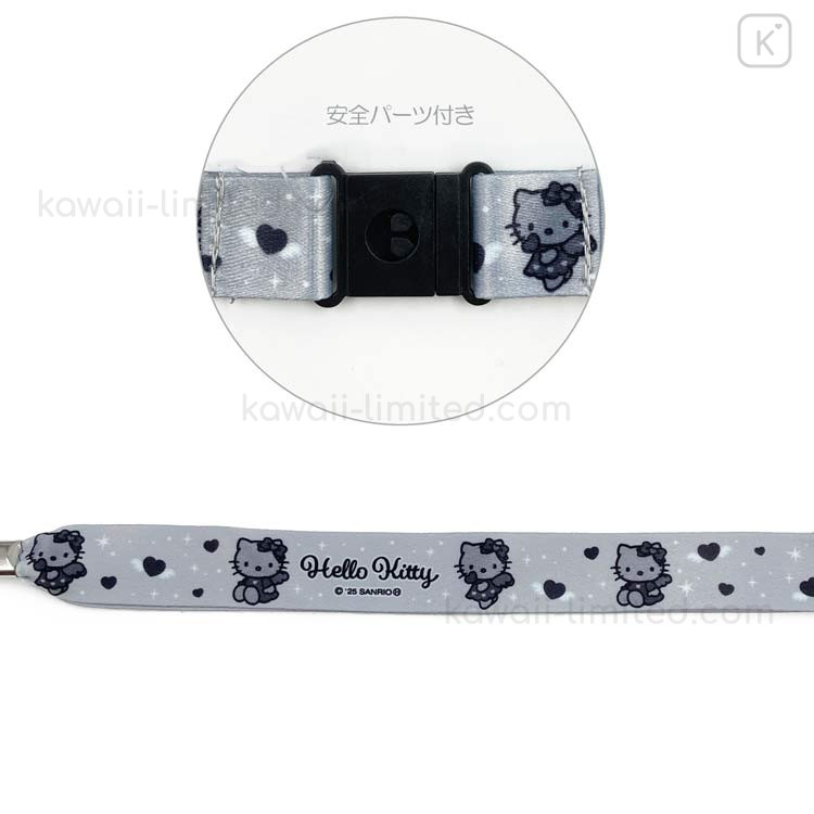 Japan Sanrio Neck Strap - Hello Kitty : Black Angel Grey