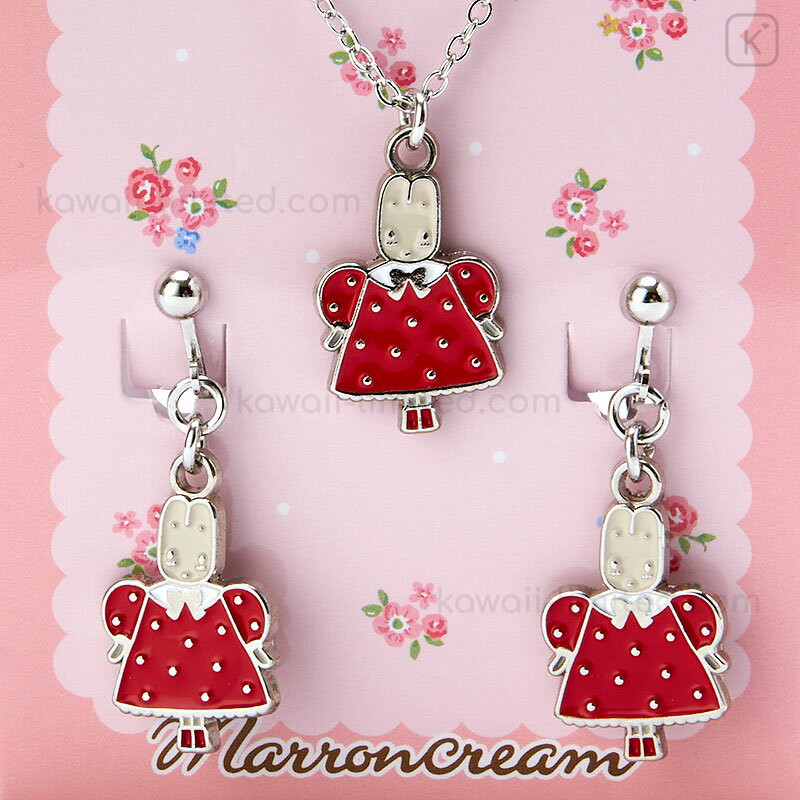 Japan Sanrio Necklace & Earrings Set - Marron Cream
