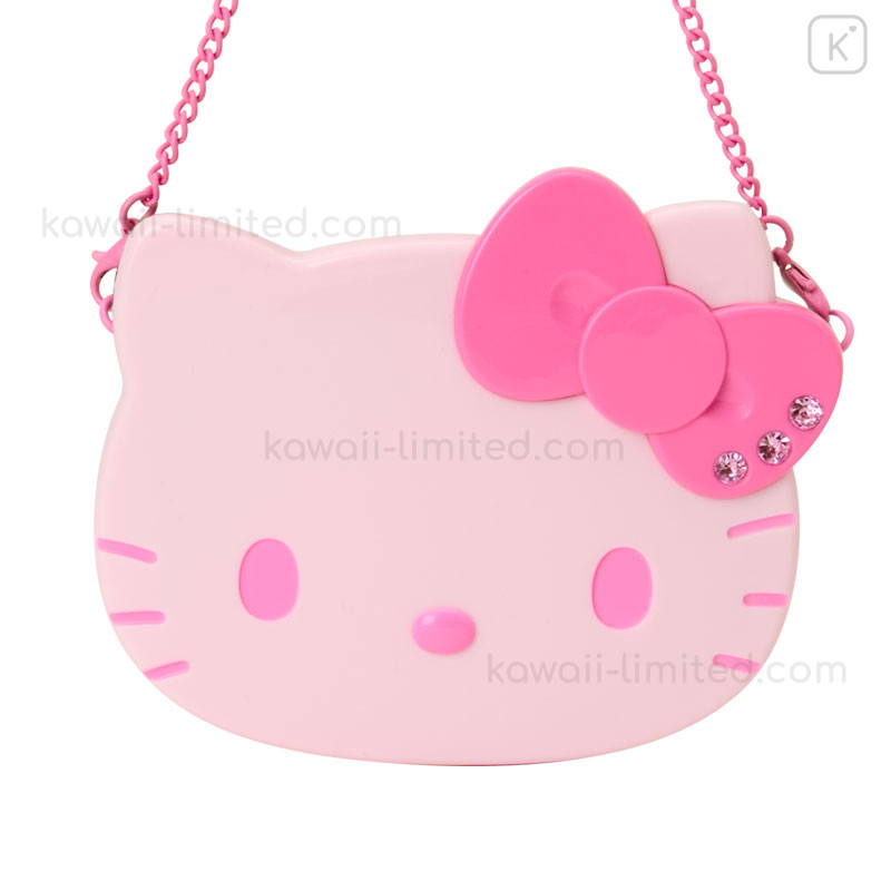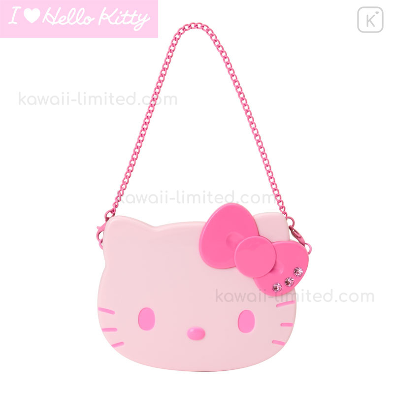 Japan Sanrio Original 2-sided Compact Mirror with Chain - Hello Kitty : I Love Hello Kitty Face Pink