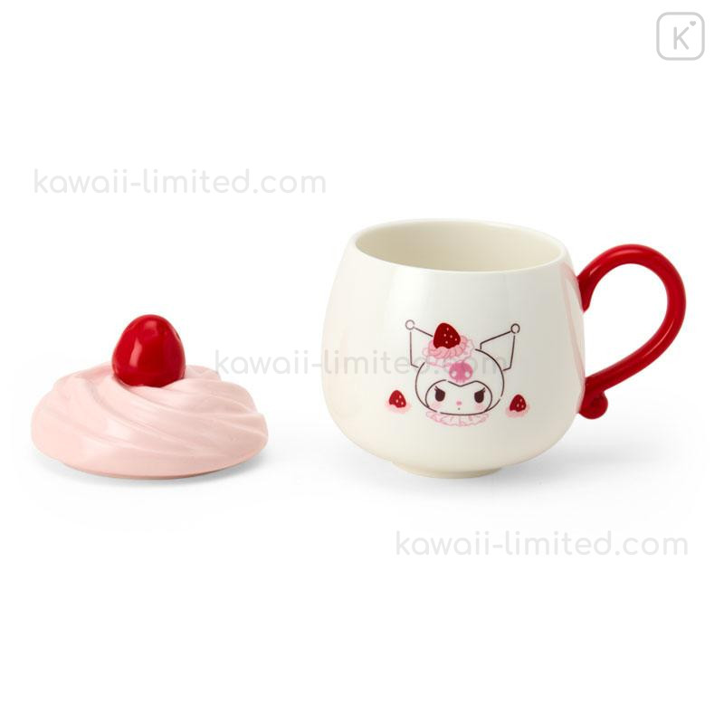 Japan Sanrio Original 3D Porcelain Mug - Kuromi : Strawberry Whipped Cake