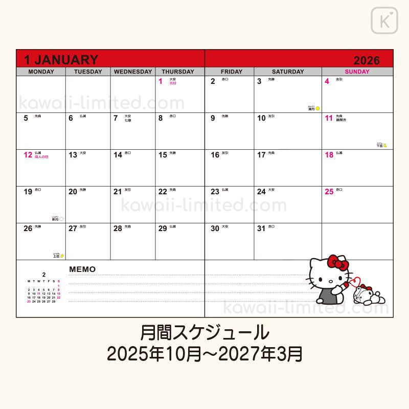 Japan Sanrio Original B6 Datebook - Hello Kitty : 2026