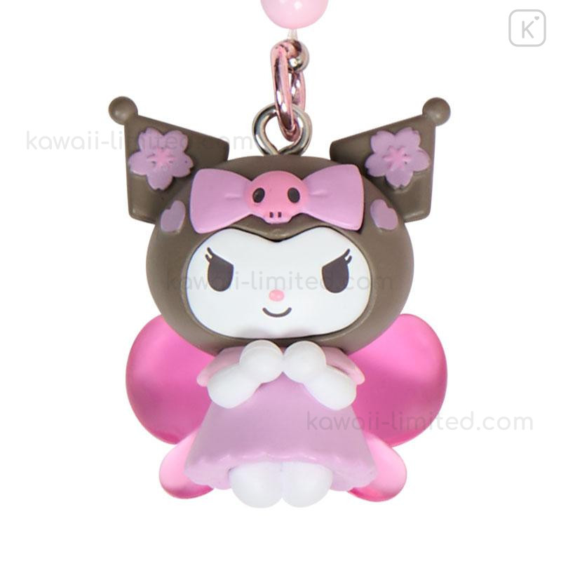 Japan Sanrio Original Bead Keychain Strap with Mascot - Kuromi : Sakura Cherry Blossom Fairy Flower