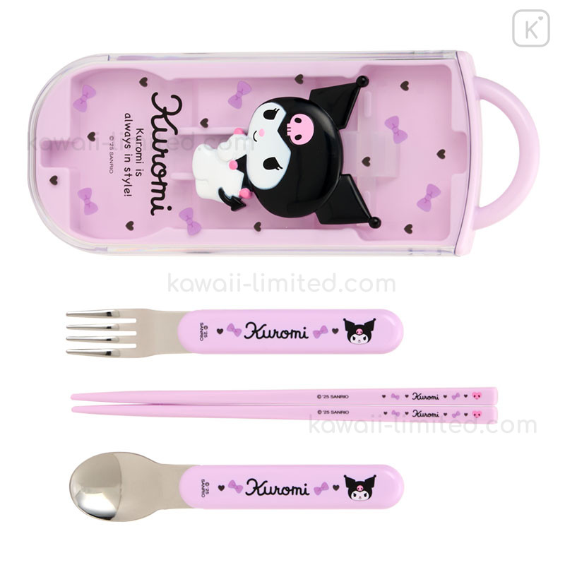 Japan Sanrio Original Bento Lunch Cutlery Set Spoon Fork Chopstick - Kuromi : Purple Ribbon