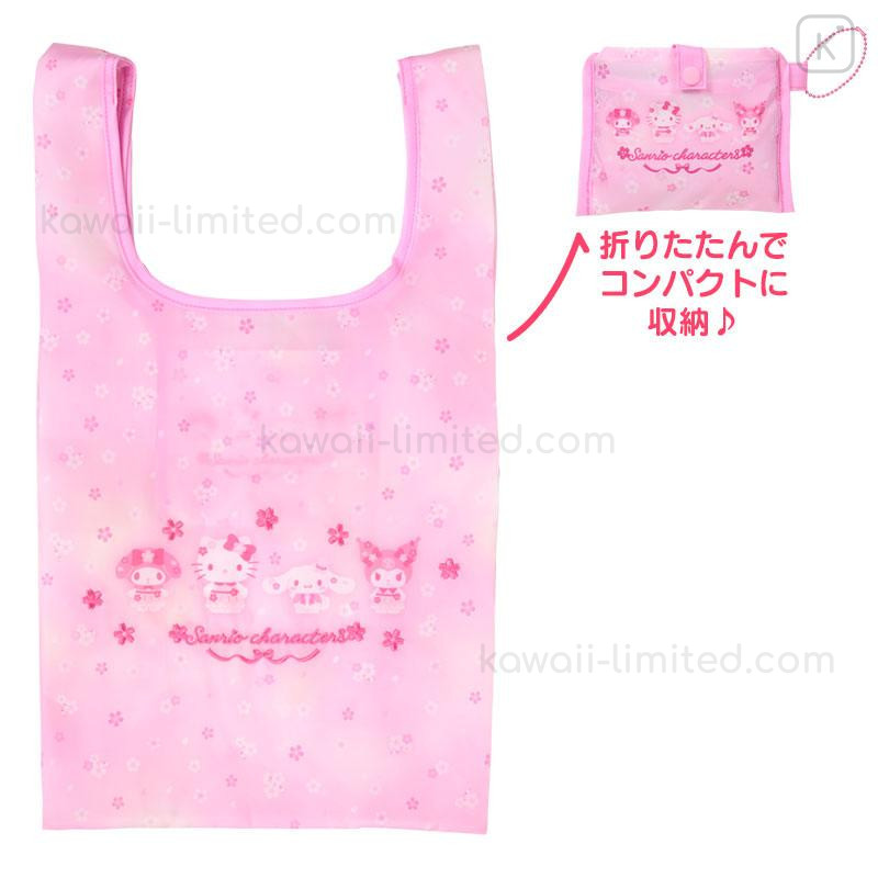 Japan Sanrio Original Eco Shopping Bag With Pocket - Sakura Cherry Blossom Fairy Flower