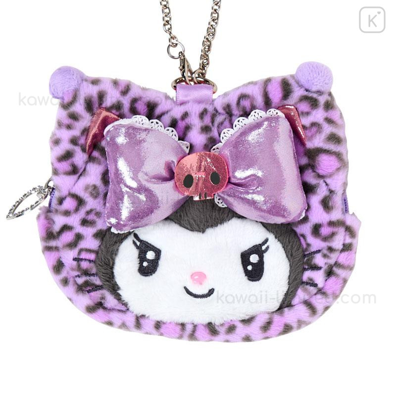 Japan Sanrio Original Face-shaped Pouch Bag Charm - Kuromi : Leopard Gal Cat