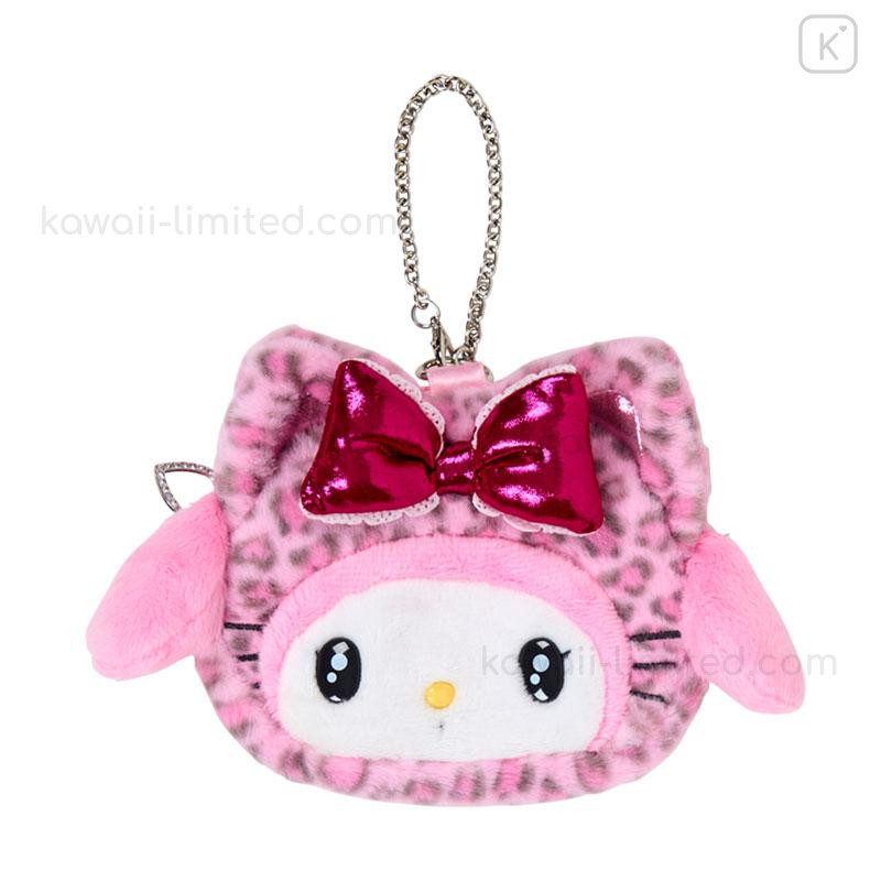 Japan Sanrio Original Face-shaped Pouch Bag Charm - My Melody : Leopard Gal Cat