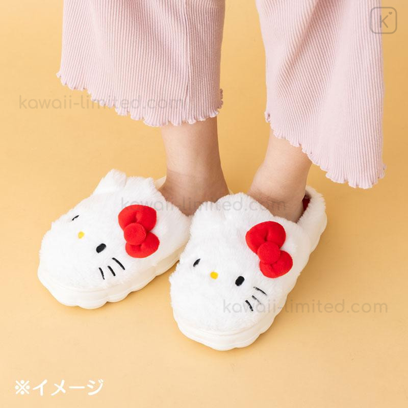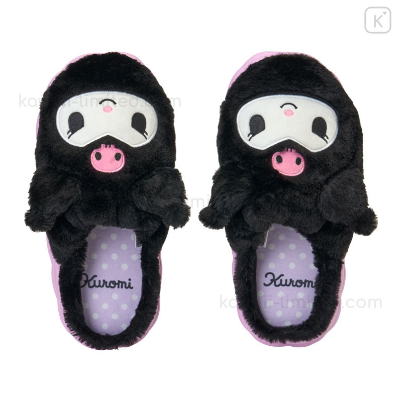 Japan Sanrio Original Fluffy Room Slippers - Kuromi : Face-Shaped