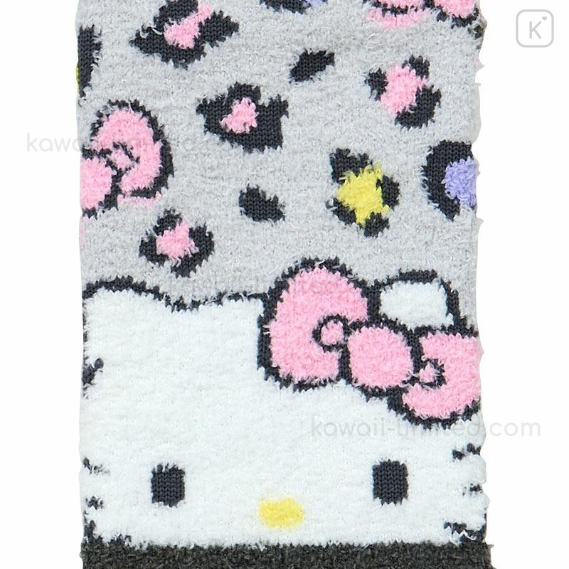 Japan Sanrio Original Fluffy Socks - Hello Kitty : Peek Out Leopard Grey