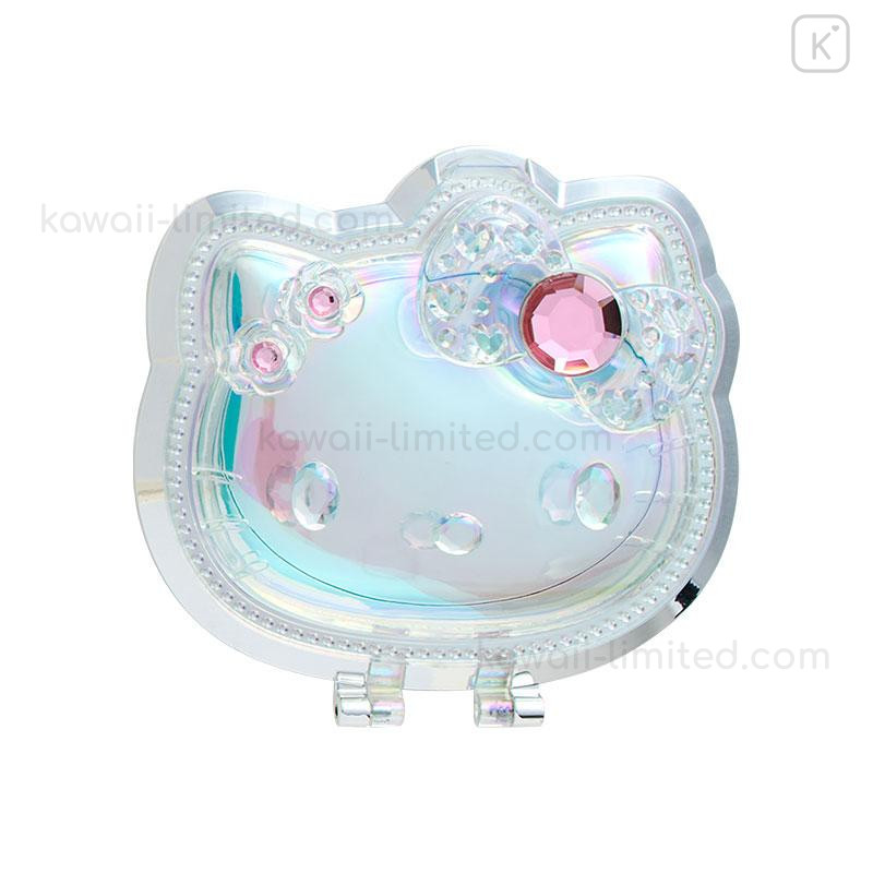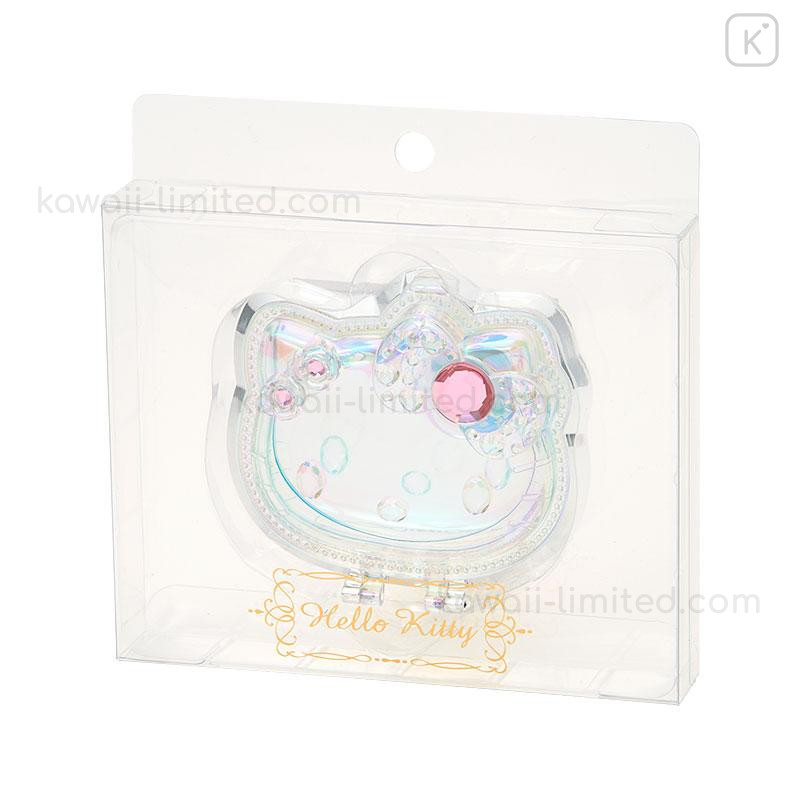 Japan Sanrio Original Folding Stand Mirror - Hello Kitty : Face Aurora Hologram Sliver