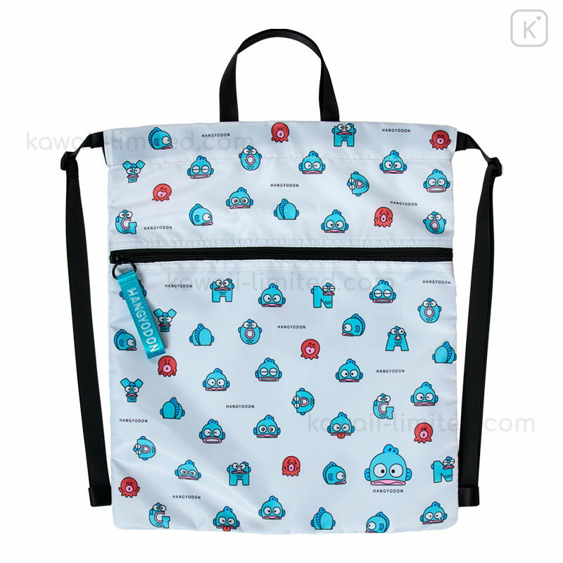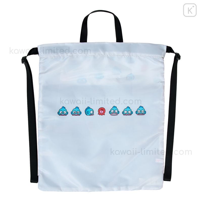Japan Sanrio Original Gym Sack Knapsack Drawstring Backpack - Hangyodon : Hangyodon & Bad Badtz-Maru Funny Face