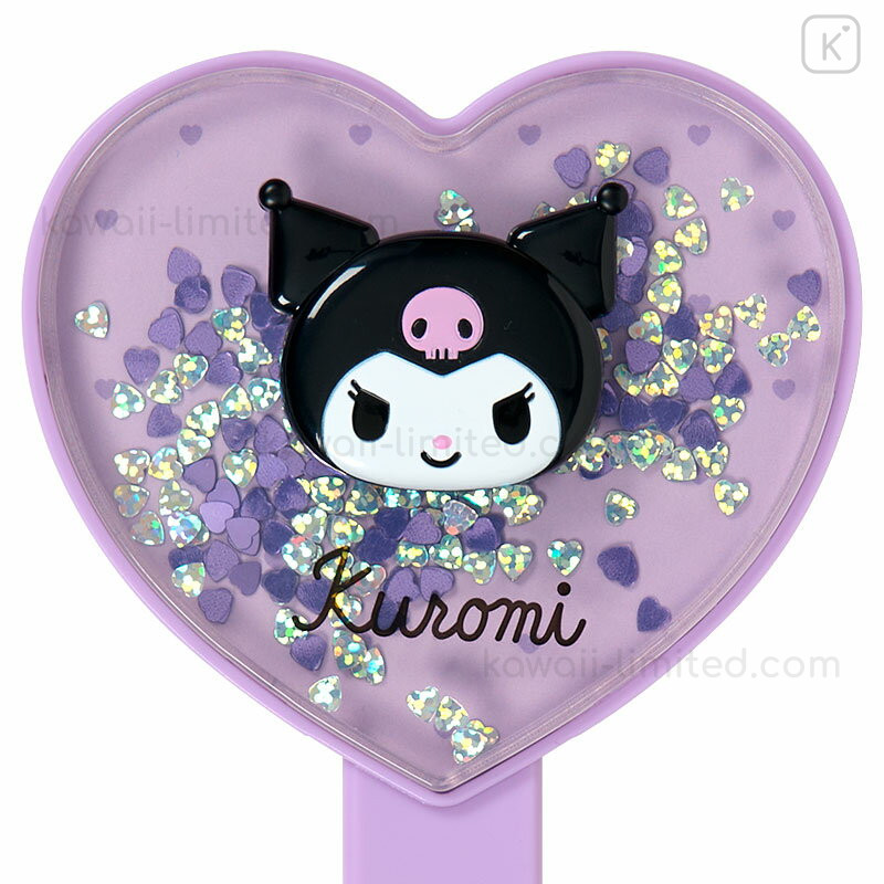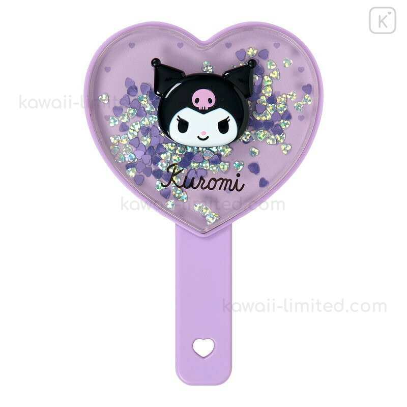 Japan Sanrio Original Hand Mirror - Kuromi : Sparkling Sequins Heart Shaped