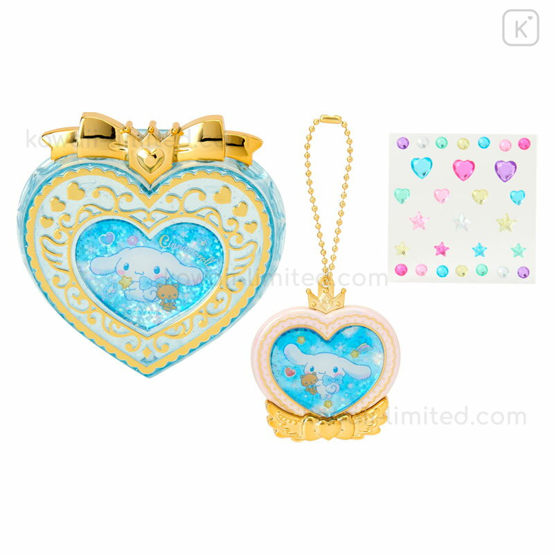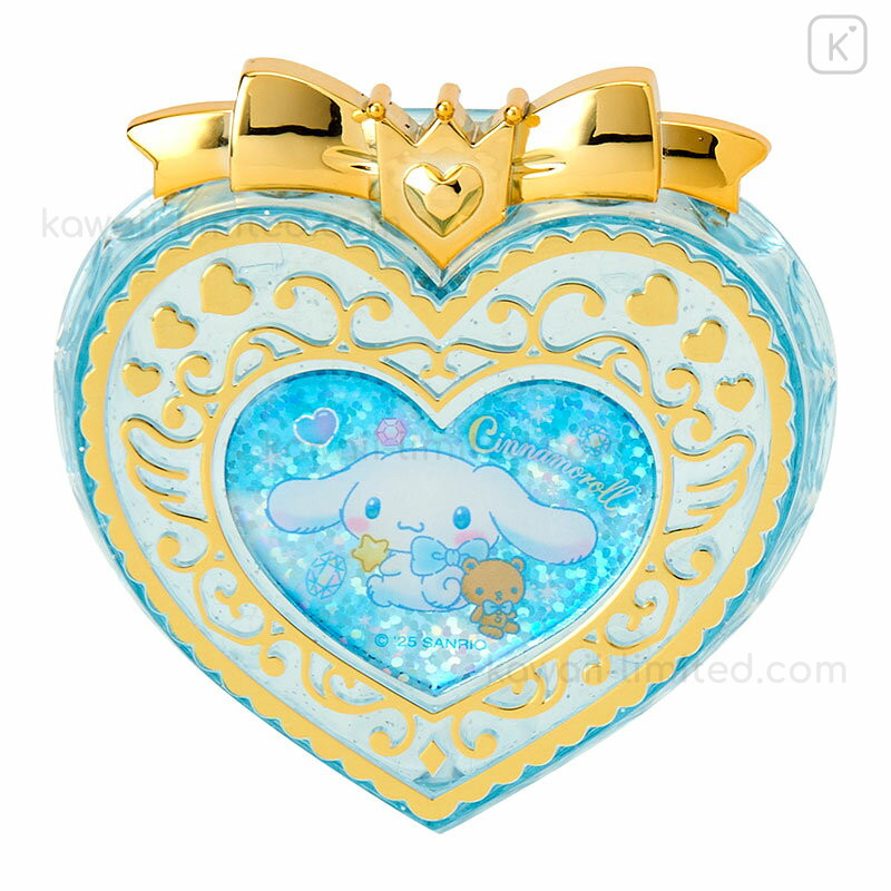 Japan Sanrio Original Heart-Shaped Glitter Trinket Box & Charm Set - Cinnamoroll : Compact Gold