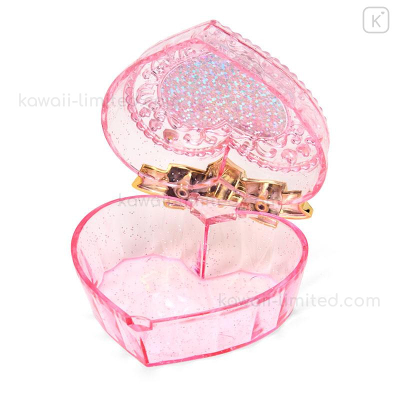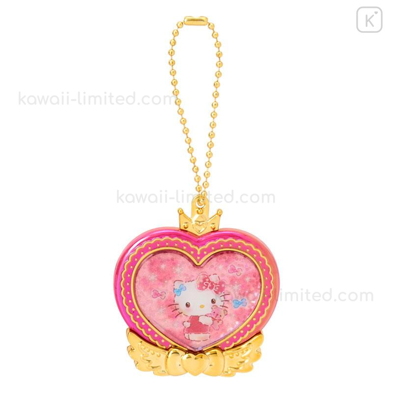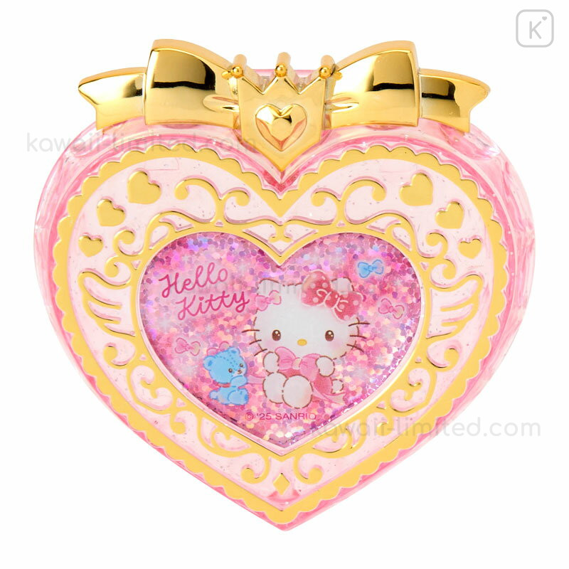 Japan Sanrio Original Heart-Shaped Glitter Trinket Box & Charm Set - Hello Kitty : Compact Gold