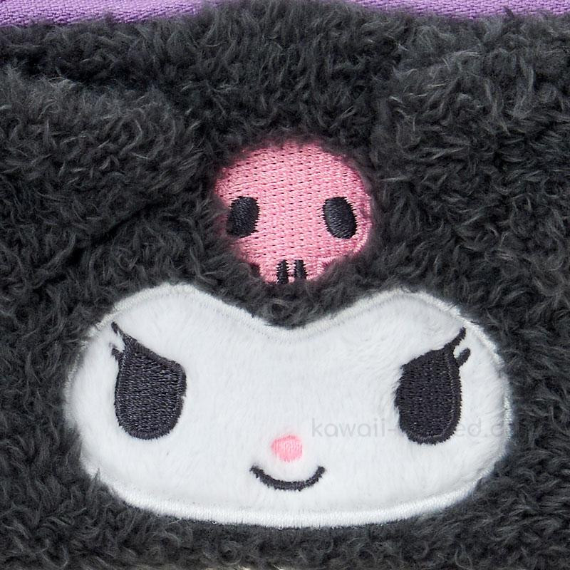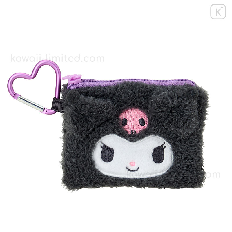 Japan Sanrio Original Mascot Mini Pouch with Carabiner - Kuromi : Fluffy Face