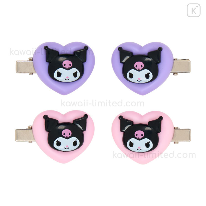 Japan Sanrio Original Mini Hair Clip Set - Kuromi : Heart