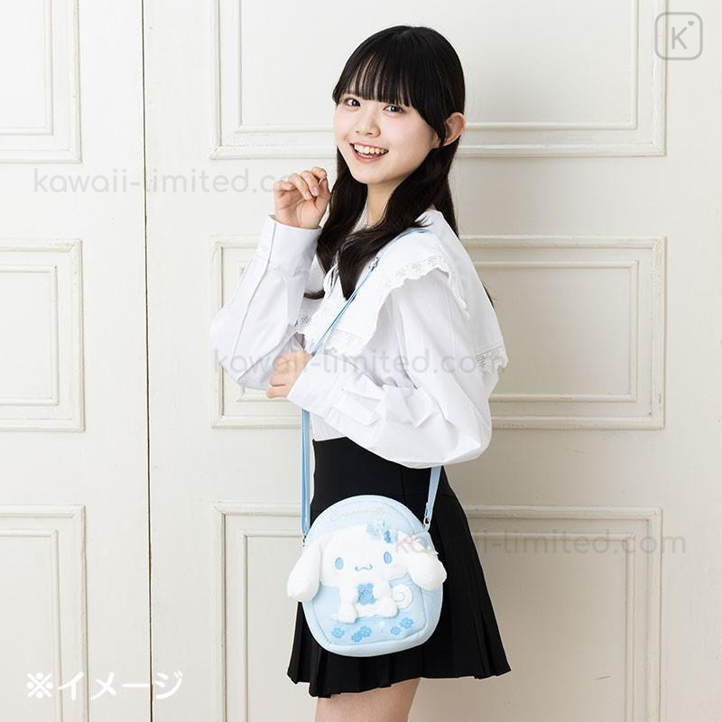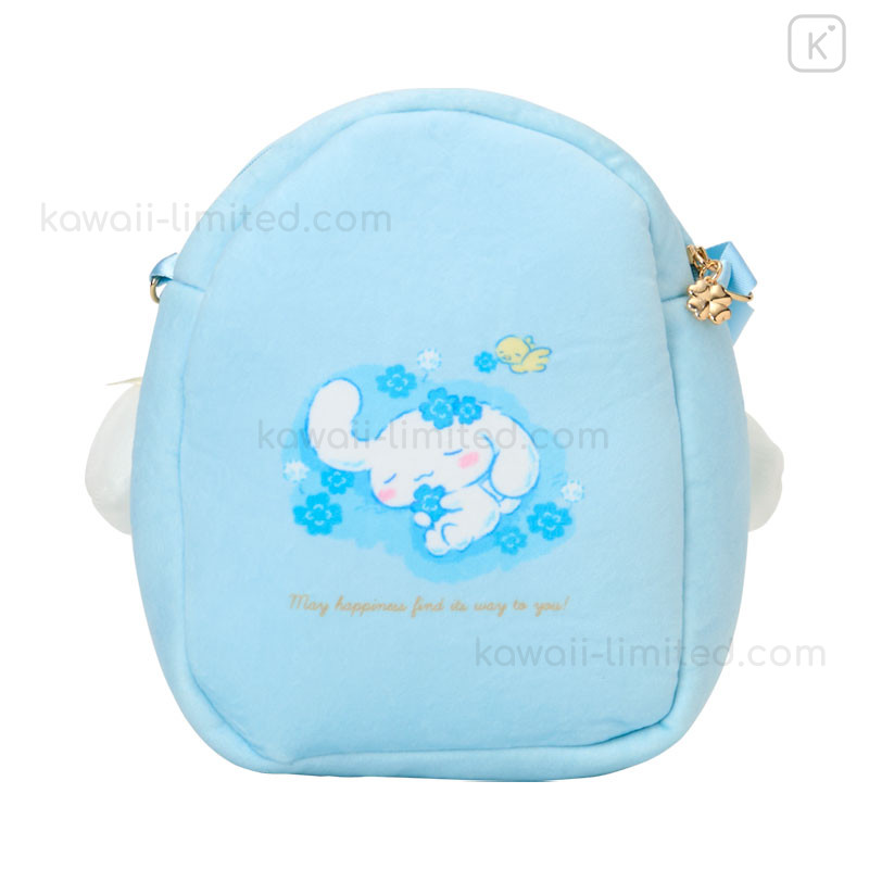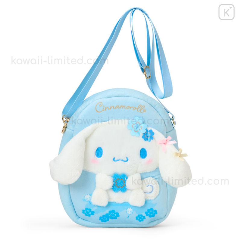 Japan Sanrio Original Plush Pochette Crossbody Shoulder Bag - Cinnamoroll : Light Blue Clover