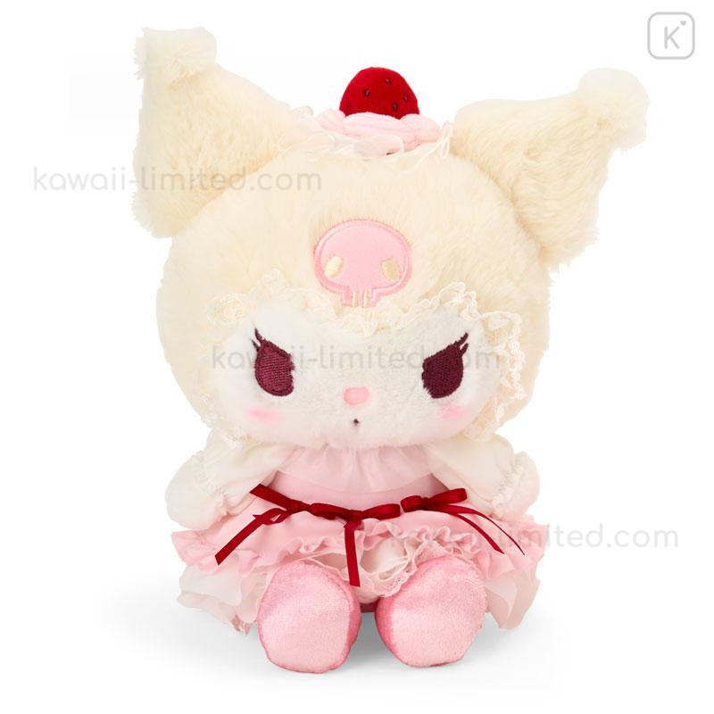 Japan Sanrio Original Plush Toy & Accessory Case Set - Kuromi : Strawberry Whipped Cake
