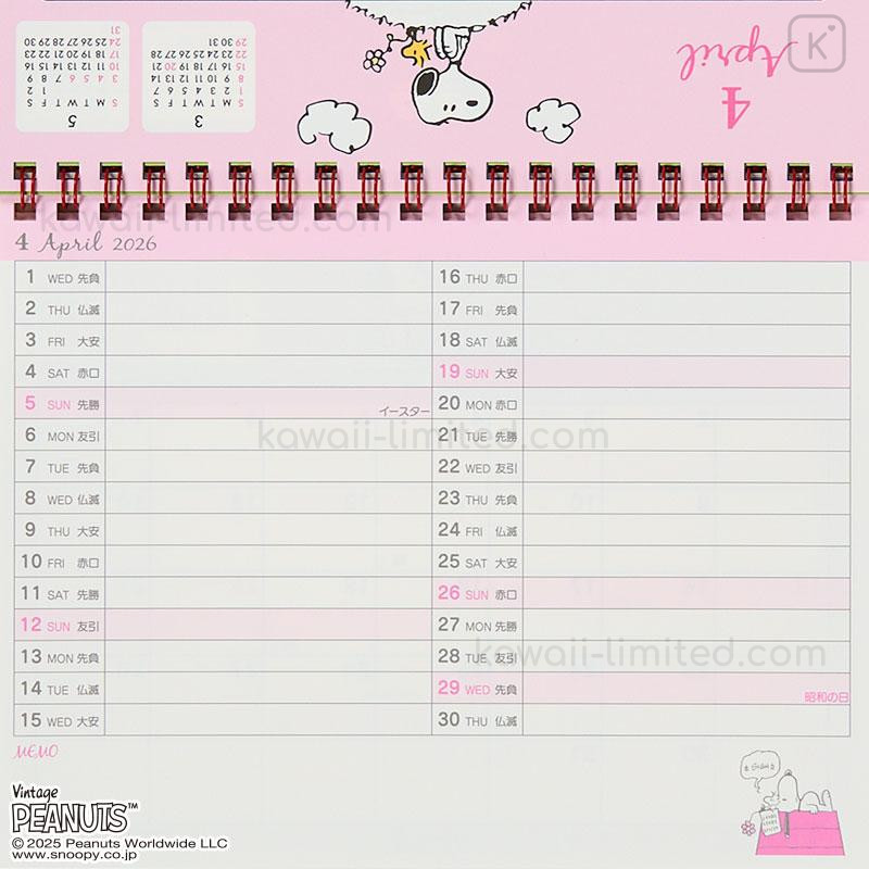 Japan Sanrio Original Ring Calendar - Snoopy : 2026