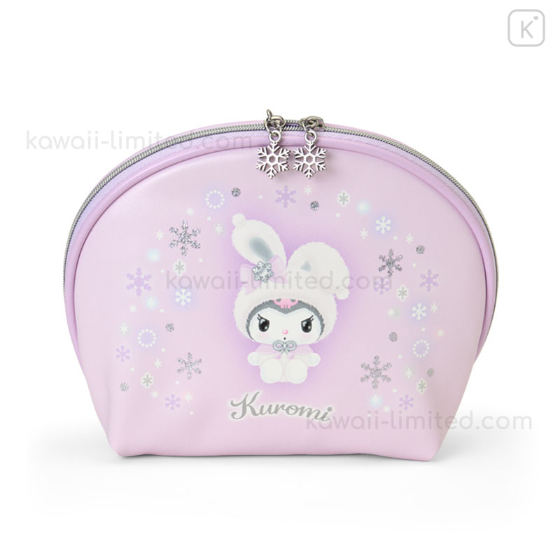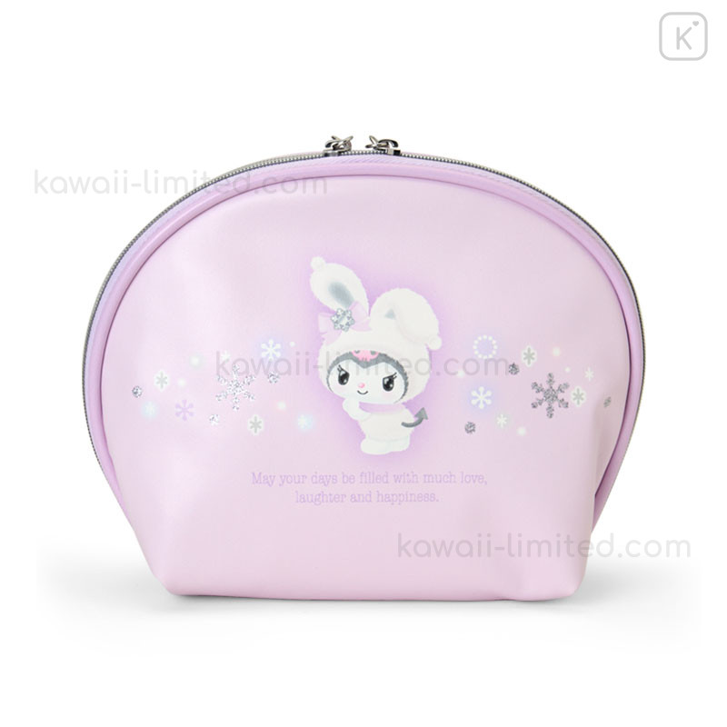 Japan Sanrio Original Round Cosmetic Pouch - Kuromi : Christmas Snow Rabbit & Snack