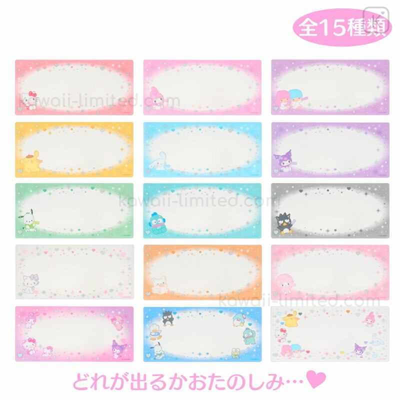 - Cinnamoroll, Pochacco, Kuromi, Hello Kitty, My Melody, Little Twin Stars, Pompompurin (Pudding Dog), Cogimyun, Bad Badtz-maru, Hangyodon, My Sweet Piano, Charmmy Kitty, Hanamaruobake