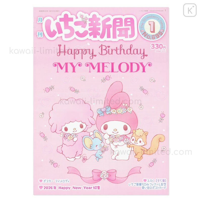 Japan Sanrio Original Strawberry Newspaper - My Melody & My Sweet Piano : Happy Birthday January 2026 : No.695