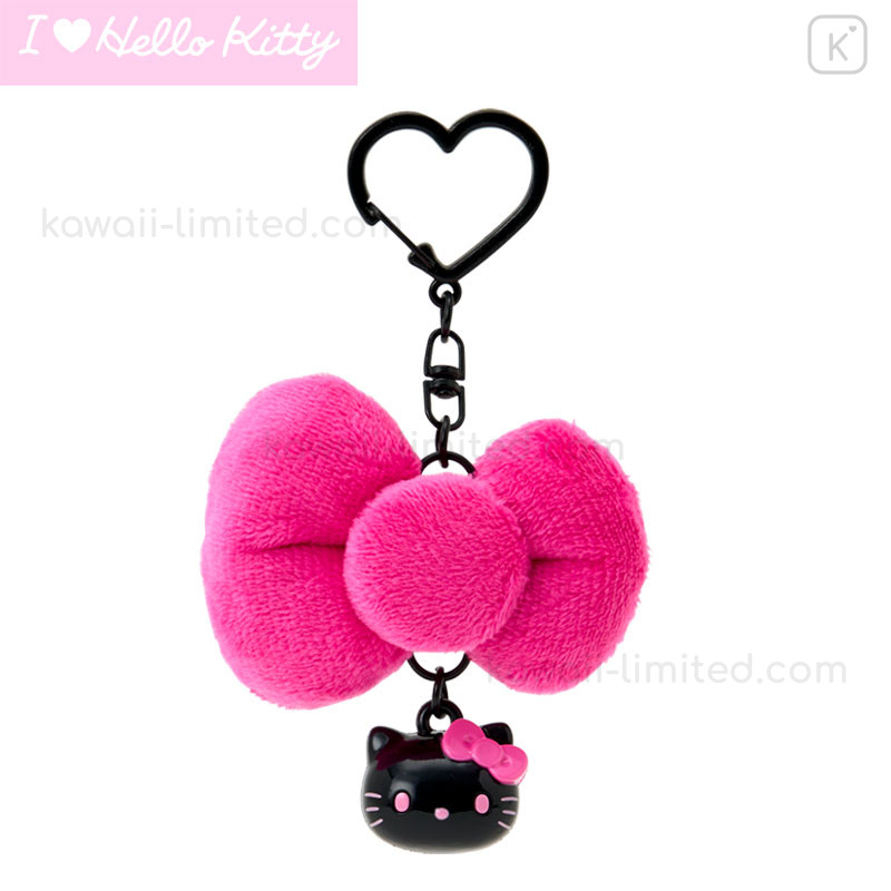 Japan Sanrio Original Swaying Ribbon Charm Keychain - Hello Kitty : I Love Hello Kitty Face Black Pink