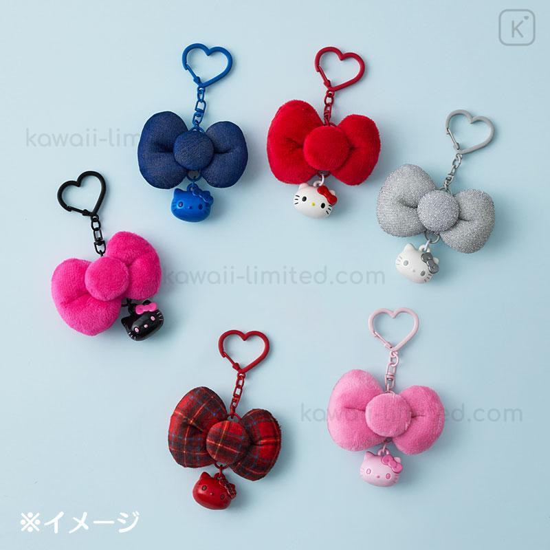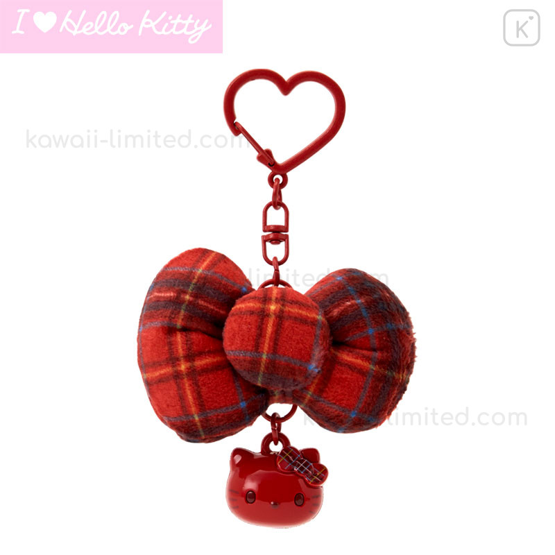 Japan Sanrio Original Swaying Ribbon Charm Keychain - Hello Kitty : I Love Hello Kitty Face Red