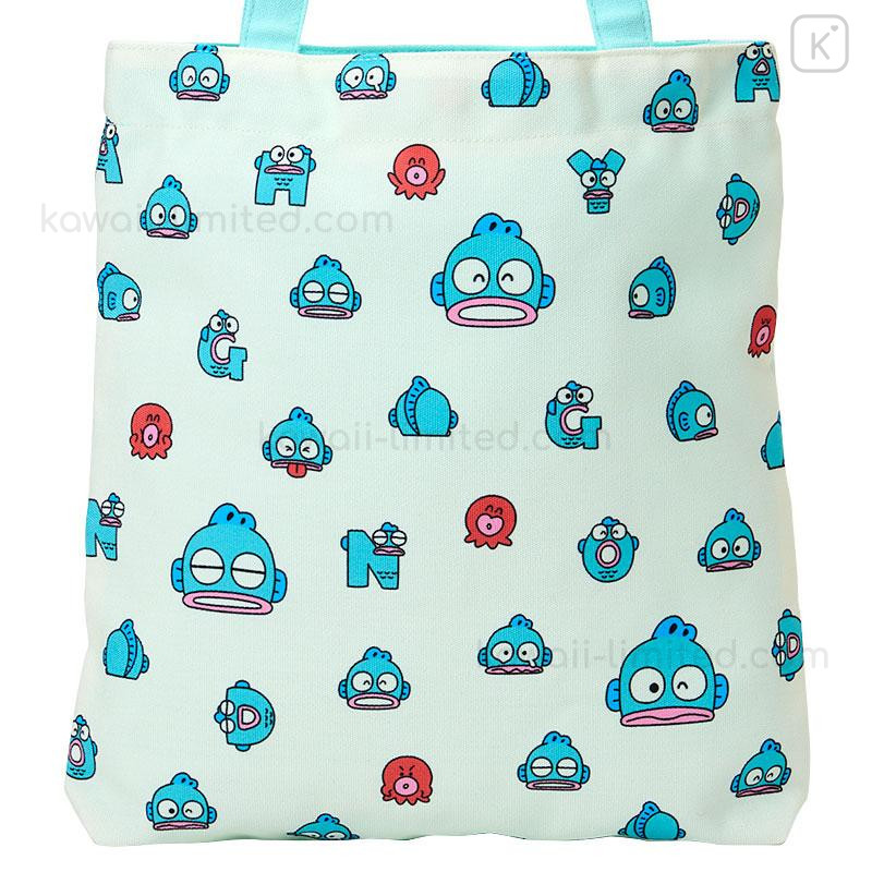 Japan Sanrio Original Tote Bag - Hangyodon : Hangyodon & Bad Badtz-Maru Funny Face