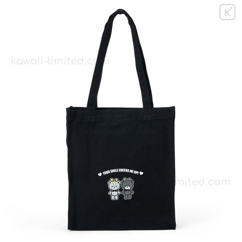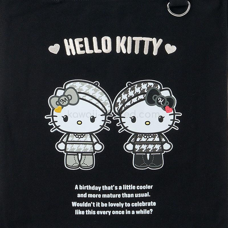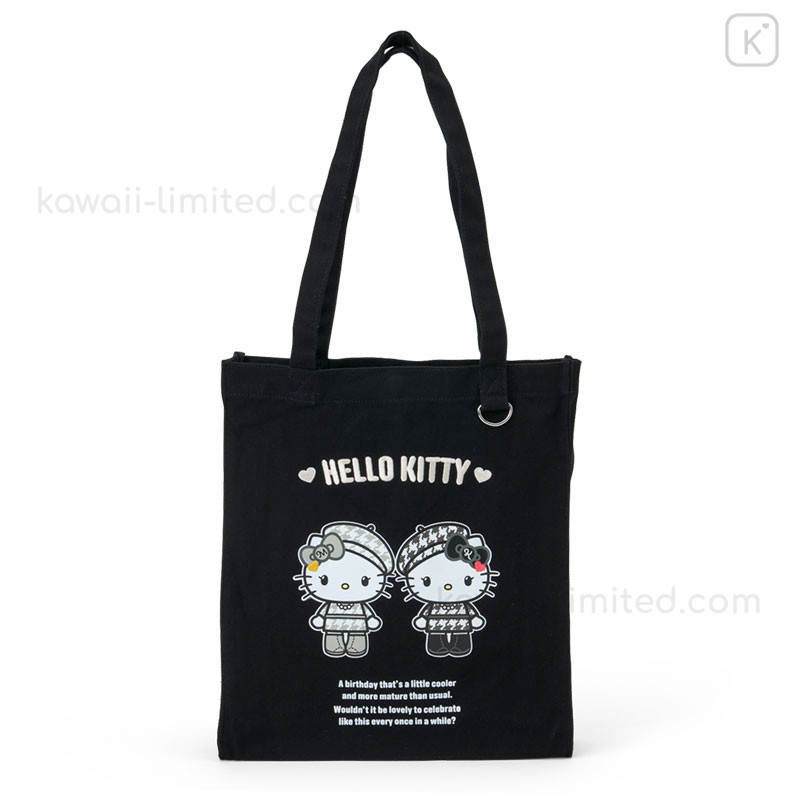 Japan Sanrio Original Tote Bag - Hello Kitty & Hello Mimmy : Monochrome Girly Twin Coordinate